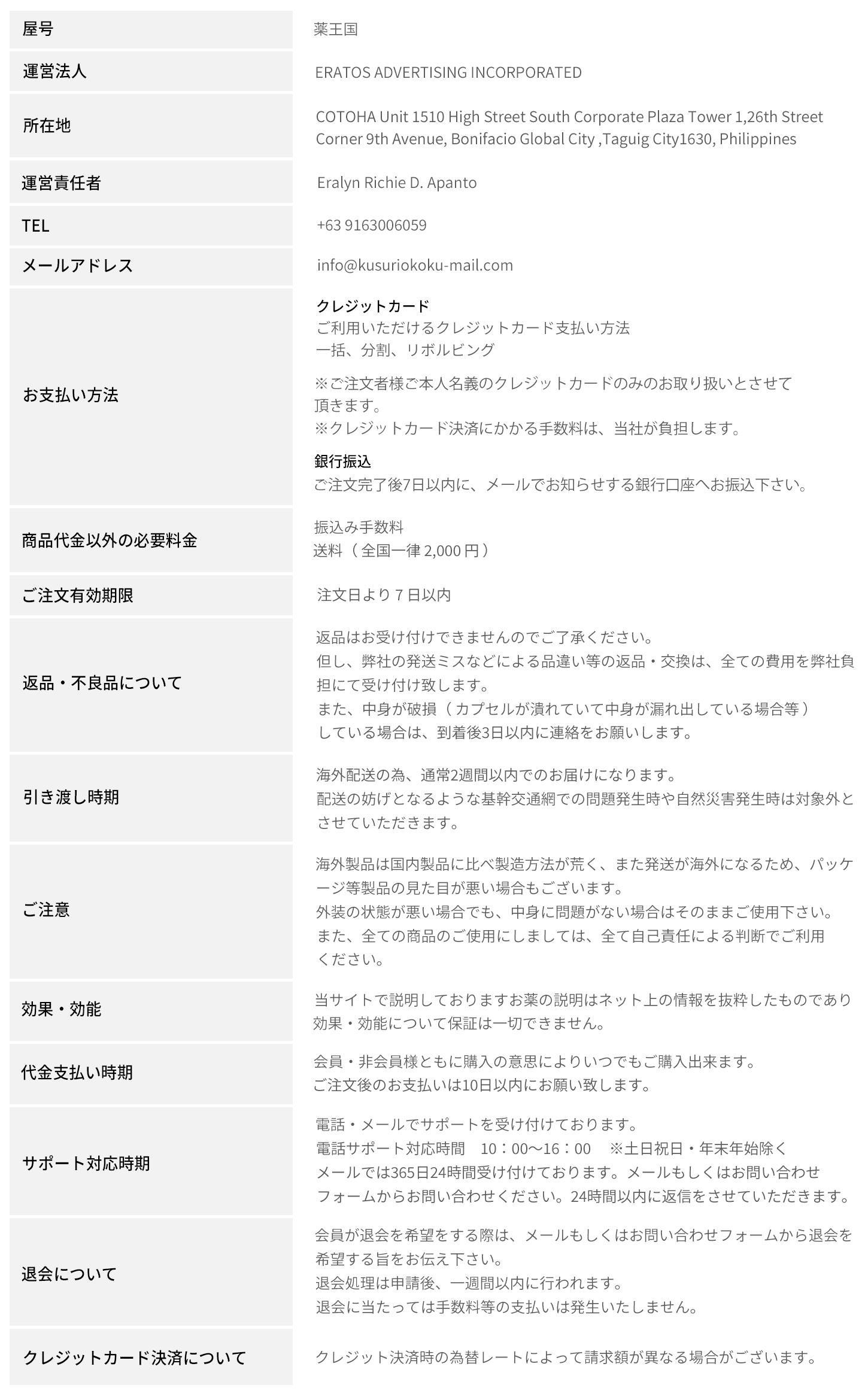 特定商取引法に基づく表示